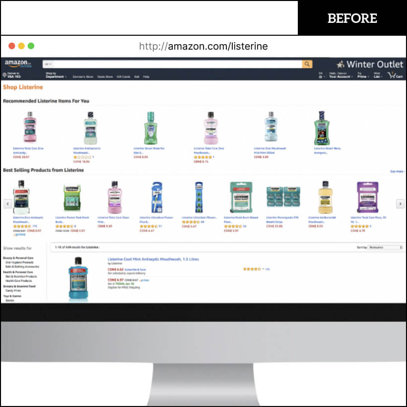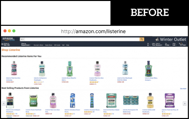 Listerine's success in traditional retail didn't guarantee a seamless transition to Amazon. BSTRO designed and setup Listerine's inaugural Amazon store, simplifying the customer journey with a seamless "add to cart" experience. Our approach distinguished their products from competitors by spotlighting the brand's strength and the unparalleled efficacy of its offerings.