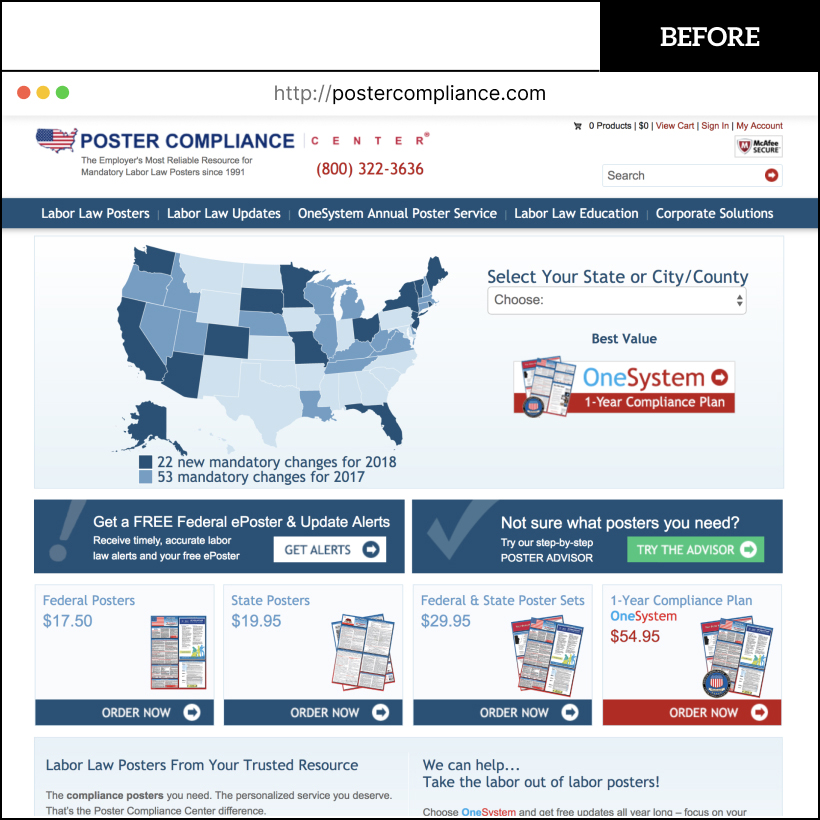 Today, Poster Compliance.com is an intuitive web experience that reflects who Poster Compliance really is: professional, highly considerate, and a company that truly cares about its customers. In the first year after our marketing efforts were launched, they have reported 29% lift in year-over-year online sales.